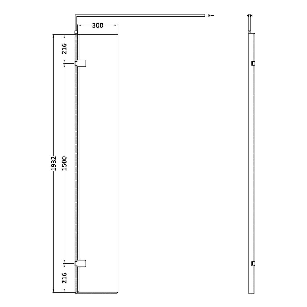 Hudson Reed Hinged Wetroom Return Panel With Support Bar – 8mm Glass – 300mm Wide