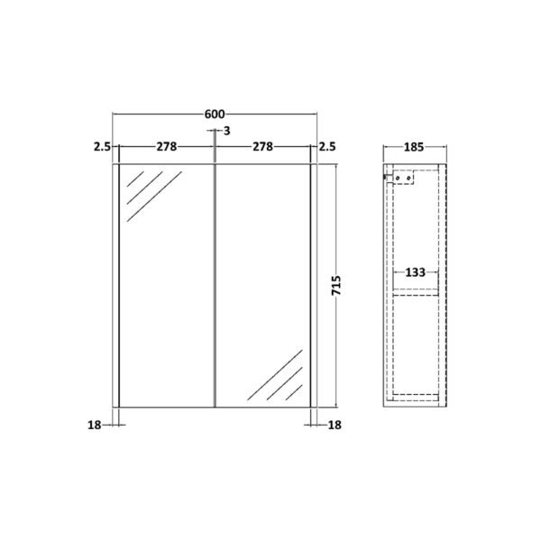 Hudson Reed Juno 2 Door 50-50 Non Illuminated Mirror Cabinet – 715mm x 600mm