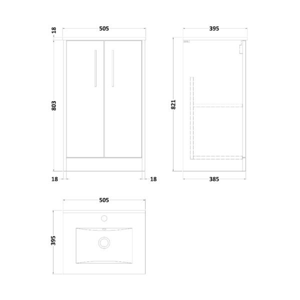 Eastbrook Cavone 2 Door Floor Standing Vanity Unit With Basin – 500mm Wide – 1 Tap Hole - Matt Grey