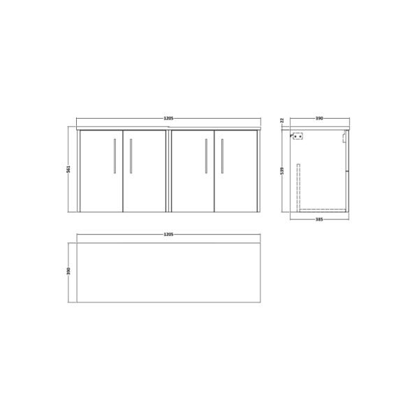Hudson Reed Juno 4 Door Wall Hung Vanity Unit With Worktop – 1200mm Wide