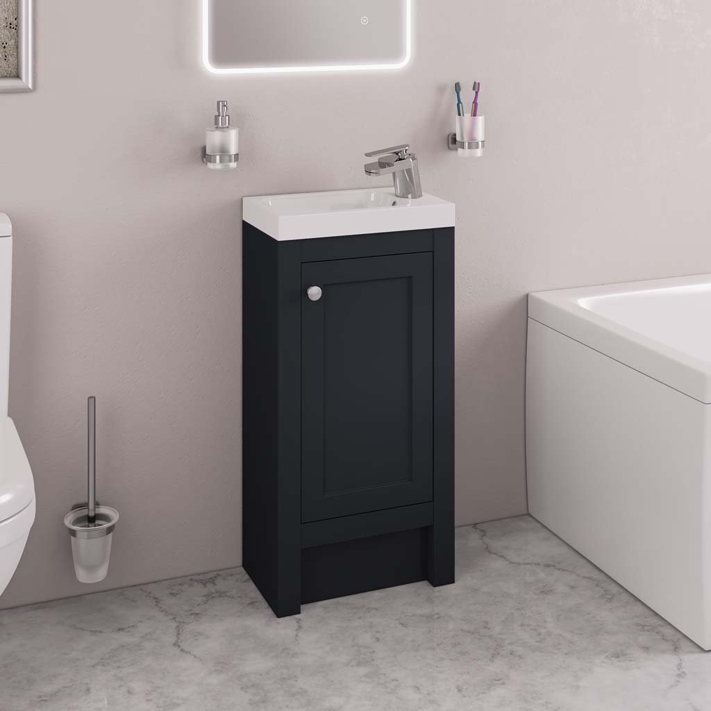 Eastbrook Hardwick 1 Door Floor Standing Vanity Unit With Basin – 390mm Wide – 1 Tap Hole - Matt Anthracite