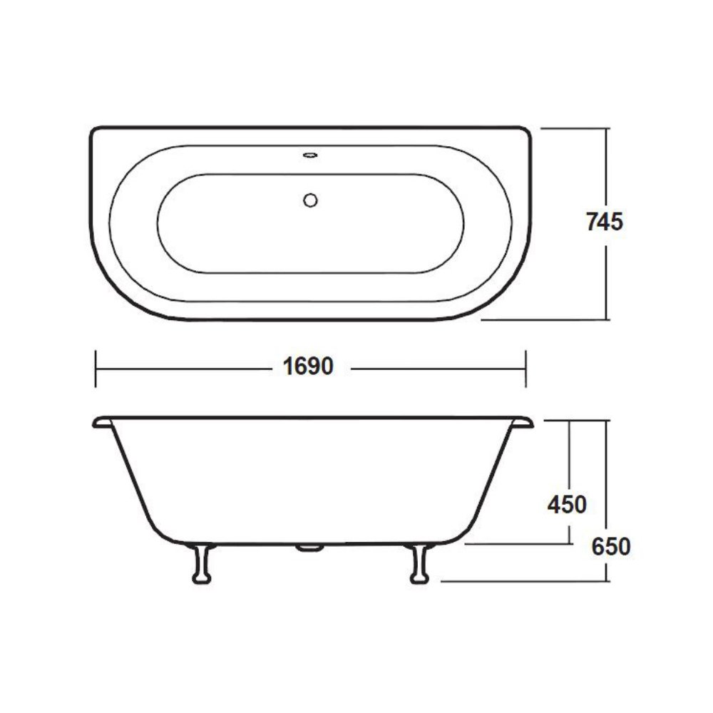 Hudson Reed Kenton Freestanding Bath With Leg – 1700mm x 750mm – No TH – White