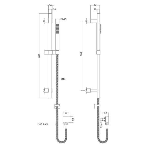 Vado, Shower Riser Rails & Slider Kits, Showers
