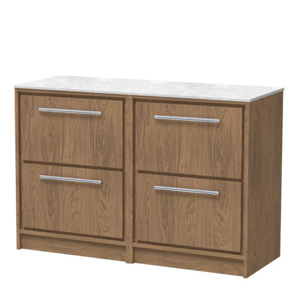 Hudson Reed Lille 4 Drawer Floorstanding Vanity Unit With White Marble Worktop – 1200mm Wide
