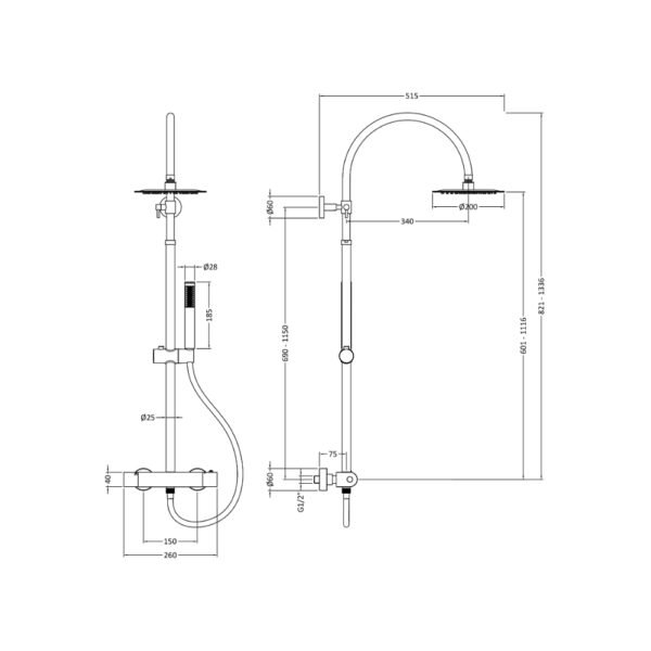 Hudson Reed Luxury Round Thermostatic Bar Mixer Shower With Shower Kit And Fixed Head – Chrome