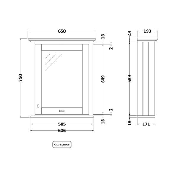 Hudson Reed Old London 1 Door Non Illuminated Mirror Cabinet – 750mm x 650mm