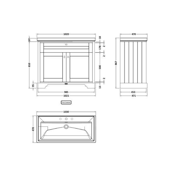 Hudson Reed Old London 2 Door Floorstanding Vanity Unit With Classic Fireclay Basin – 3 TH – 1000mm Wide