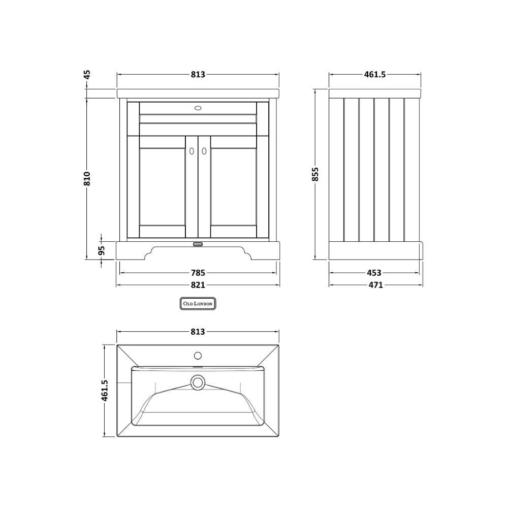 Hudson Reed Old London 2 Door Floorstanding Vanity Unit With Modern Fireclay Basin – 1 TH – 800mm Wide