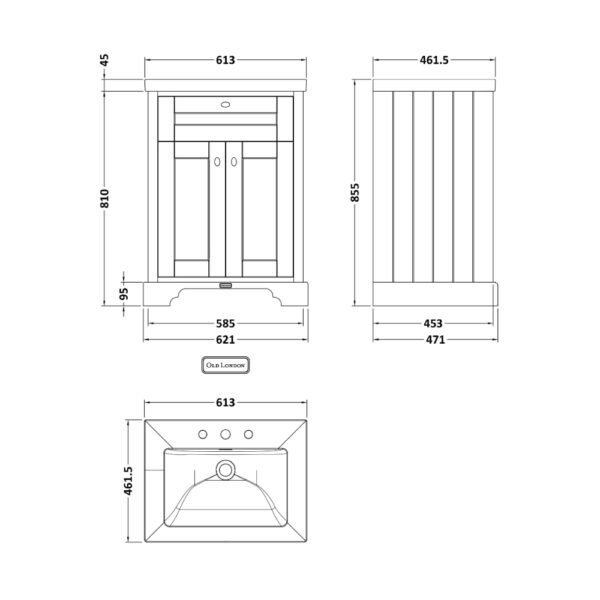 Hudson Reed Old London 2 Door Floorstanding Vanity Unit With Modern Fireclay Basin – 3 TH – 600mm Wide