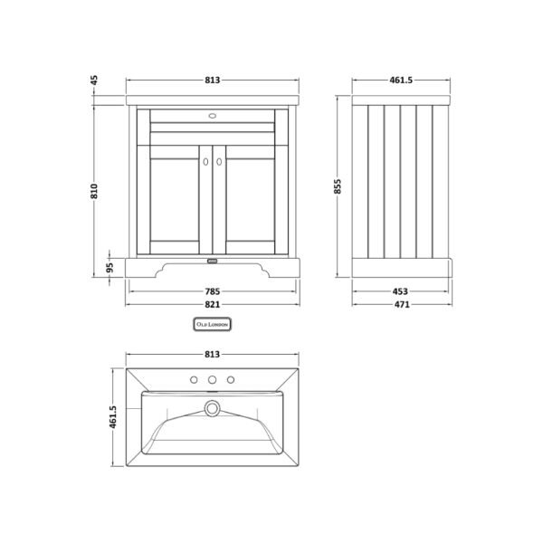Hudson Reed Old London 2 Door Floorstanding Vanity Unit With Modern Fireclay Basin – 3 TH – 800mm Wide