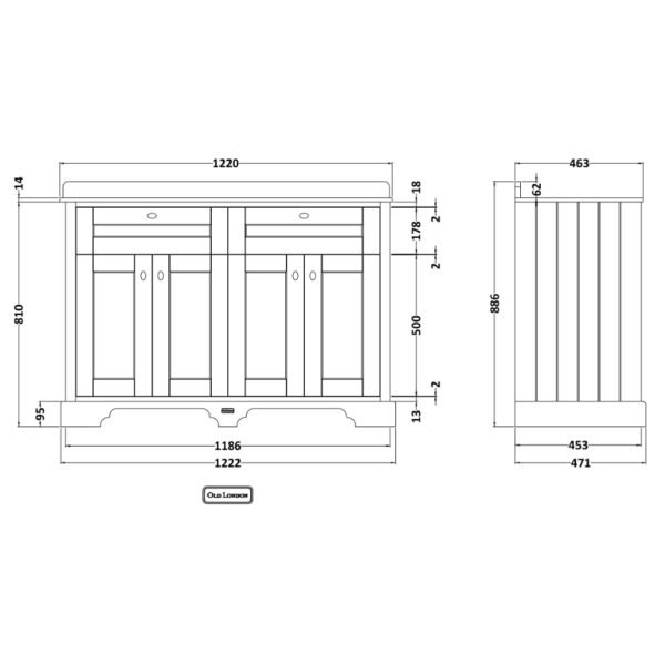 Hudson Reed Old London 4 Door Floorstanding Vanity Unit With Double Top Basin – 1200mm Wide