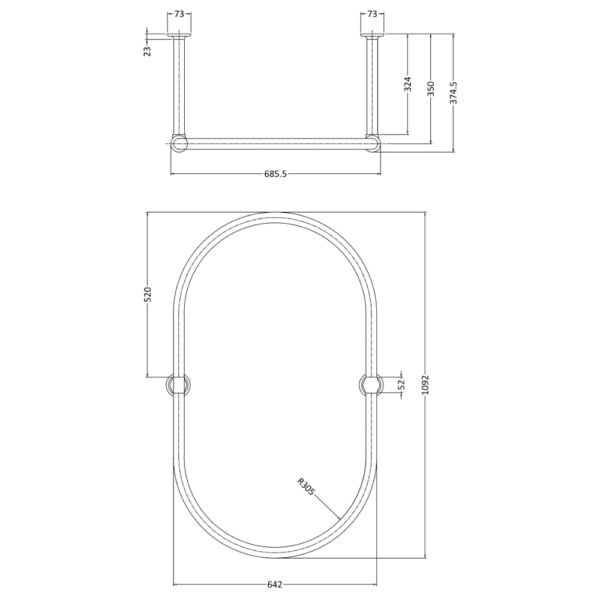 Hudson Reed Oval Shaped Shower Ring – 1092mm Wide – Chrome