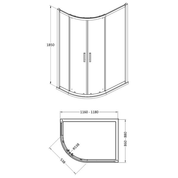 Hudson Reed Pacific 2 Door Offset Quadrant Shower Enclosure With D Shape Handle – 6mm Glass – Chrome