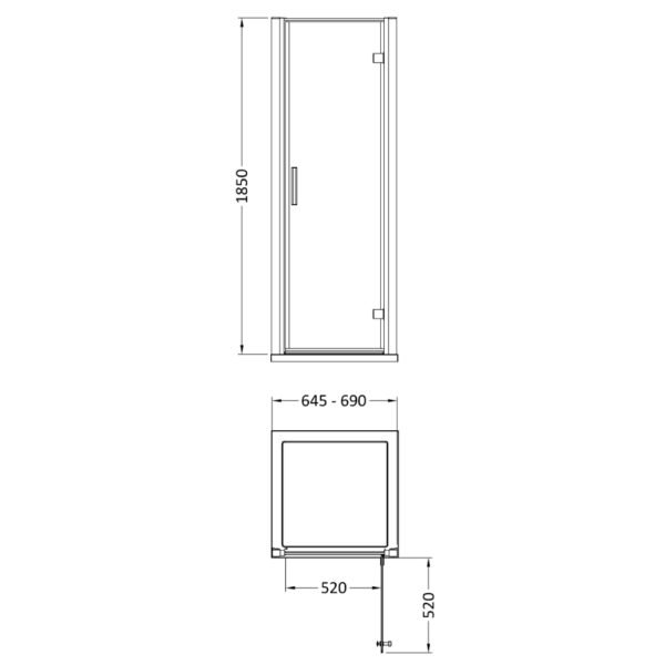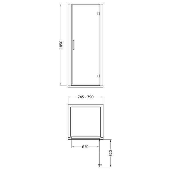 Hudson Reed Pacific Hinged Shower Door – 6mm Glass – D-Handle