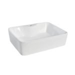 - Rectangular basin suitable for mounting on furniture or a counter top
