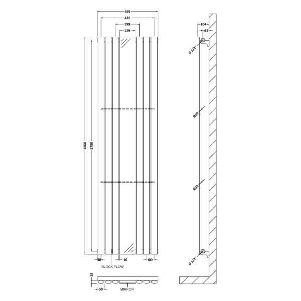 Hudson Reed Revive Single Panel Mirrored Vertical Designer Radiator – 1800mm x 499mm