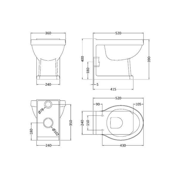 Hudson Reed Richmond Back To Wall Toilet – Without Seat – White