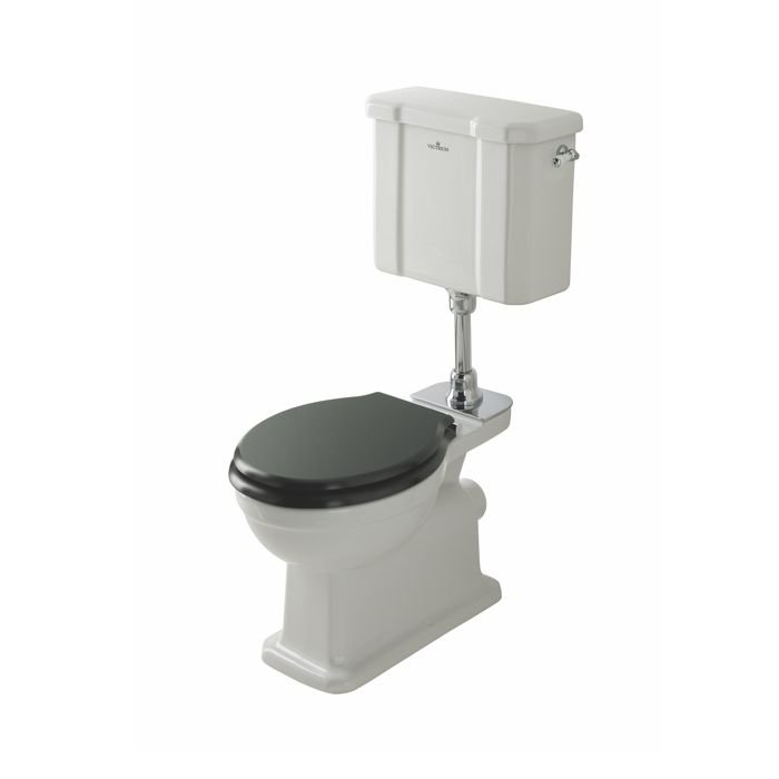 BC Designs Victrion Medium Level Toilet – White - Matt Black Seat, With Cistern