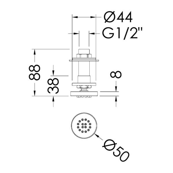 Hudson Reed Round Single Body Jet – 50mm Wide – Chrome