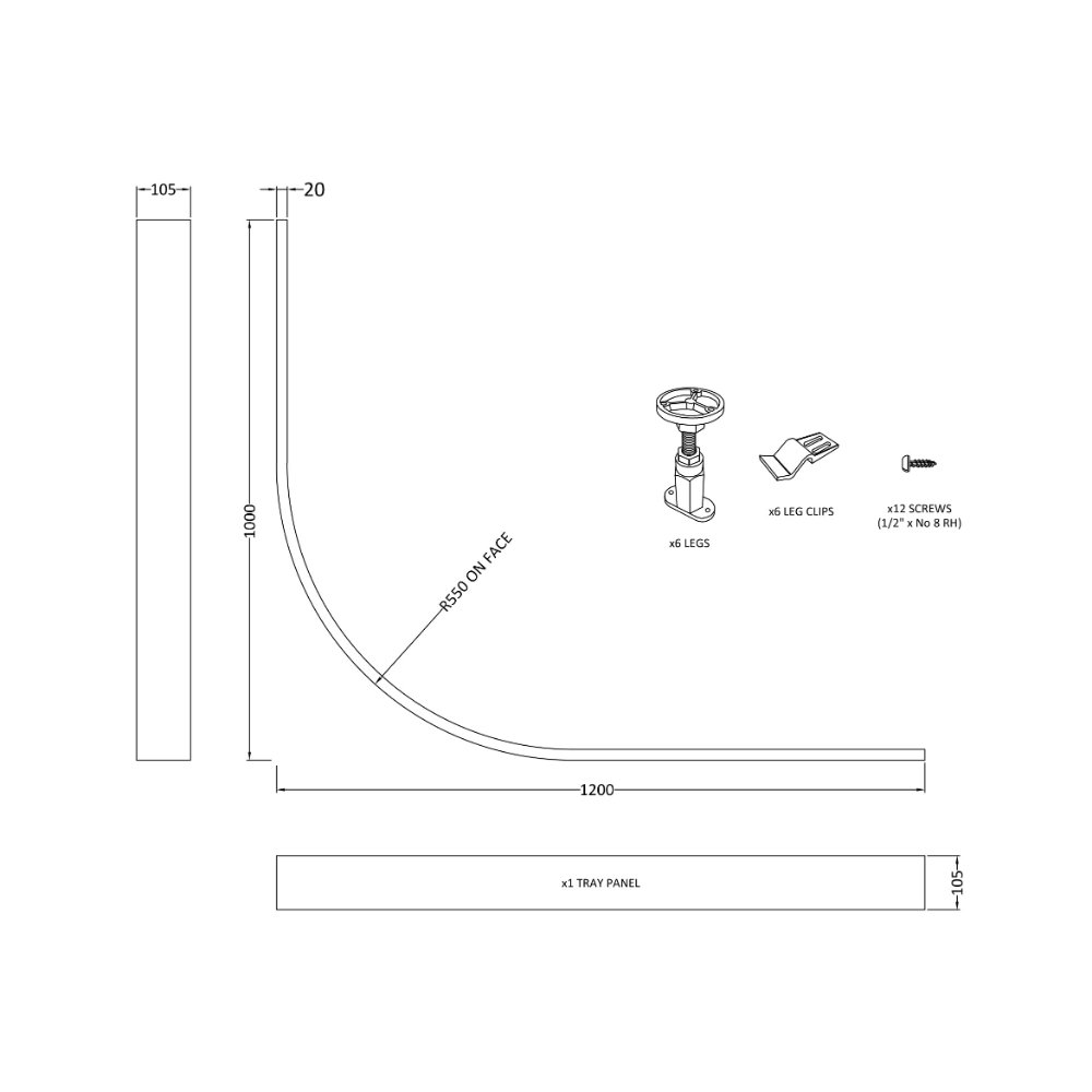 Hudson Reed Shower Tray Leg And Plinth Kit For Offset Quadrant Trays – Grey Slate