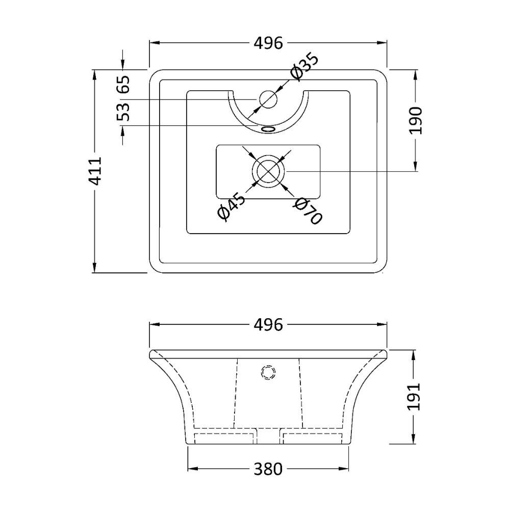 Hudson Reed Sit On Countertop Basin – 460mm Wide – 1 TH – White