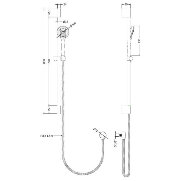 Vado Eris Single Function Slide Shower Rail Kit - Chrome