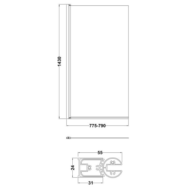 Hudson Reed Square Hinged Bath Screen – 1430mm x 785mm – Chrome
