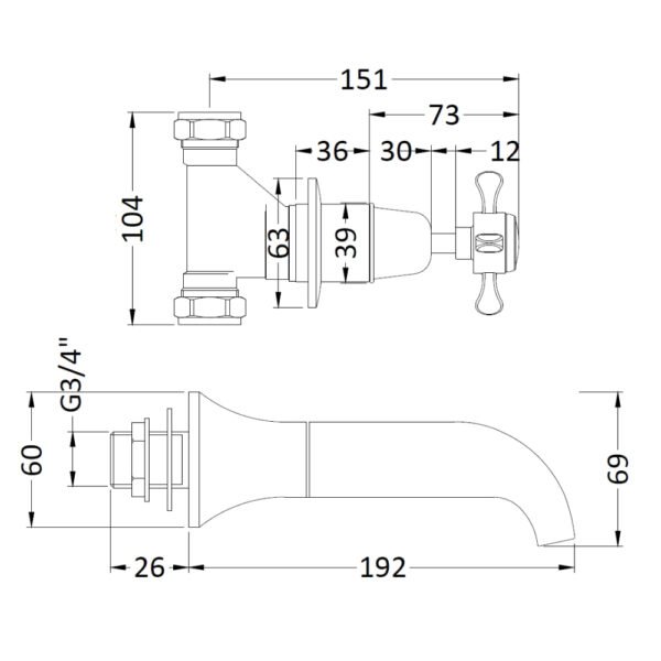 Hudson Reed Topaz Dome Crosshead 3 Hole Wall Mounted Bath Filler Tap