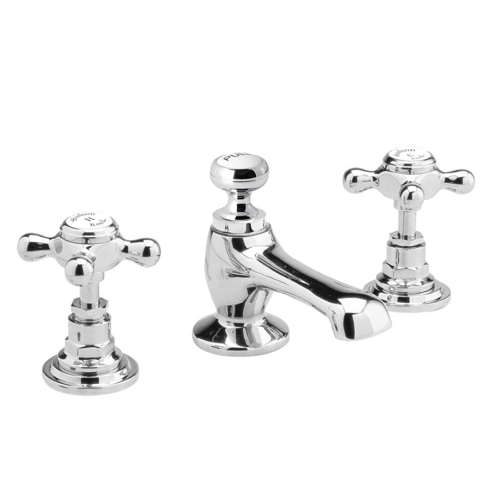 Hudson Reed Topaz Dual Crosshead 3 Hole Deck Mounted Basin Mixer Tap With Pop Up Waste