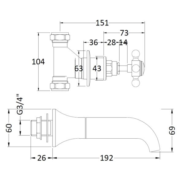 - Tap Spout Projection: 192mm