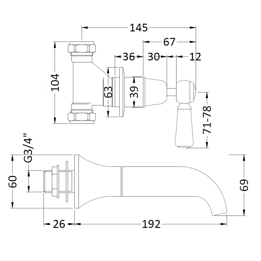 - Tap Spout Projection: 192mm