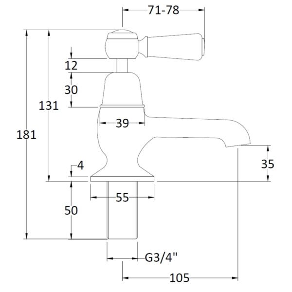 - Tap Base to Spout: 35mm