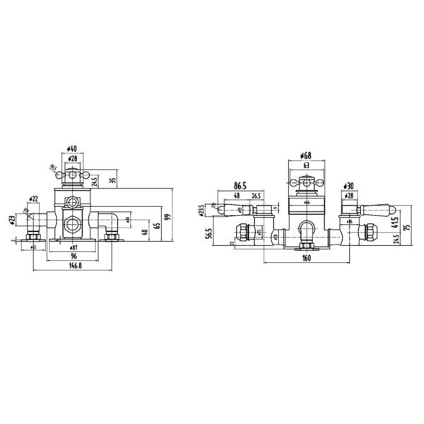Hudson Reed Topaz Traditional 2 Outlet 3 Handle Thermostatic Exposed Shower Valve – Chrome
