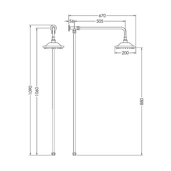 Hudson Reed Traditional Shower Riser Kit With Fixed Shower Head – Chrome