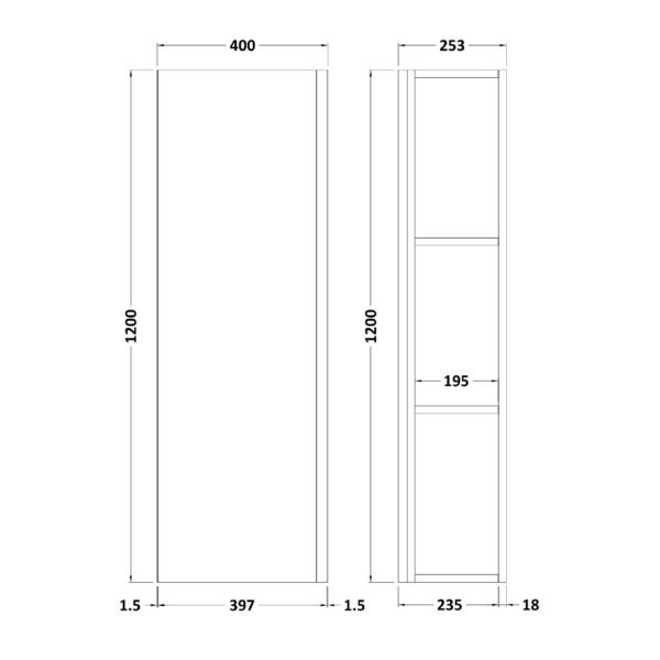 Hudson Reed Urban Wall Hung Tall Storage Unit – 1200mm High