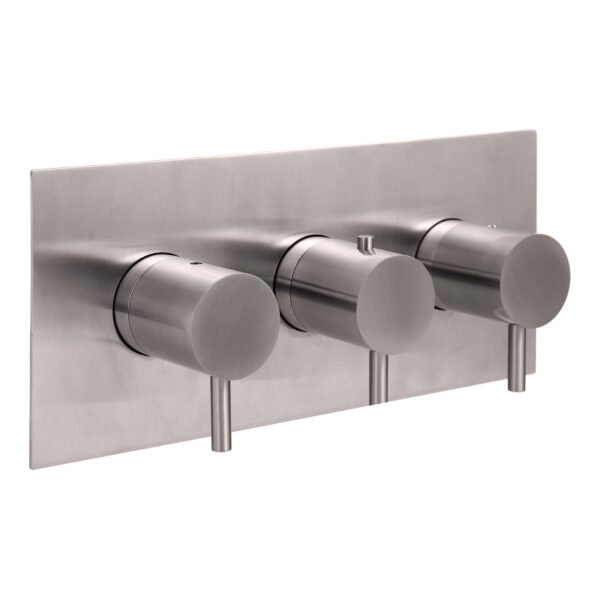 JTP Inox 3 Outlet 3 Handle Horizontal Thermostatic Concealed Shower Valve Stainless Steel