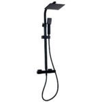 Kartell Nero Square 2 Outlet 2 Handle Thermostatic Concealed Shower Valve With Slide Rail Kit With Outlet Elbow – Matt Black