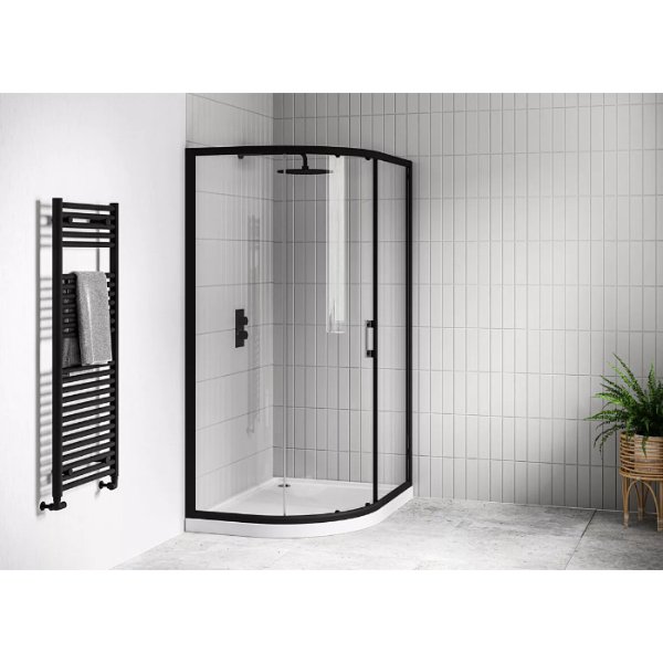 Tissino Rivelo Single Door Quadrant Shower Enclosure - 900mm X 900mm, Matt Black