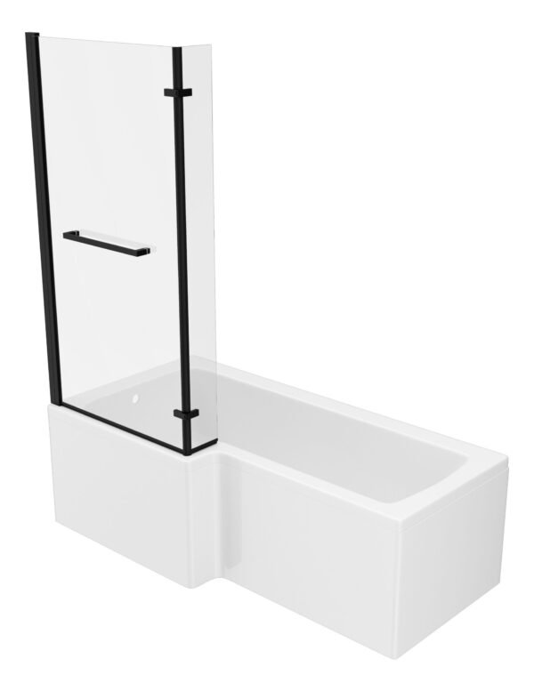 Neela L Shape 1700x850x560mm 0TH Shower Bath Pack (LH) – Matt Black