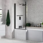 Neela L Shape SUPERCAST 1700x850x560mm 0TH Shower Bath Pack (RH) – Matt Black