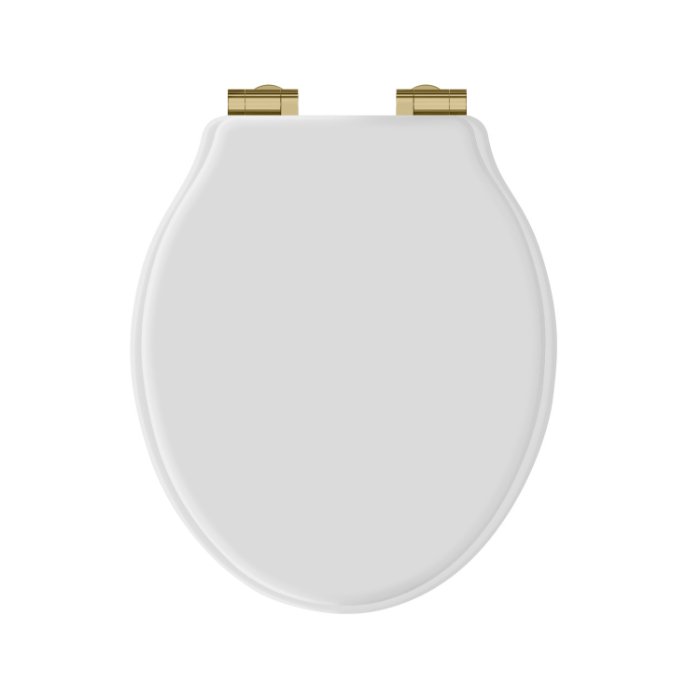 Bc Designs Soft Close Toilet Seat With Hinges - Gloss White, Brushed Gold