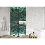 Scudo Athena Frameless Hinged Shower Door With In Line And Side Panel – 6mm – Matt Black
