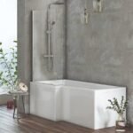 Scudo P Shape 6mm Glass Bath Screen – 1400mm x 800mm