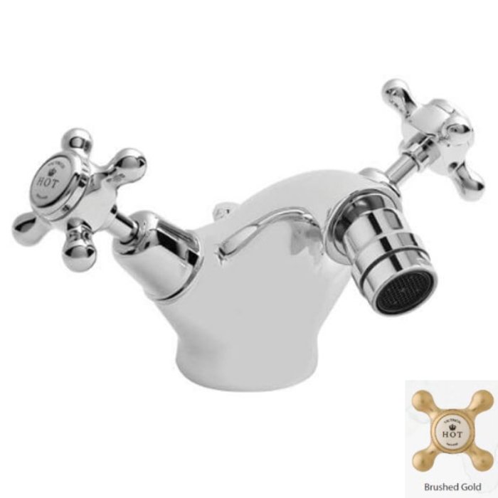 BC Designs Victrion Crosshead Mono Bidet Mixer Tap with Pop-Up Waste - Brushed Gold