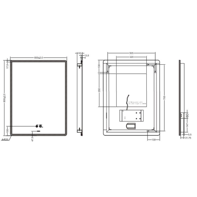 Tissino Varano LED front lit mirror with shaver socket – 600mm x 800mm
