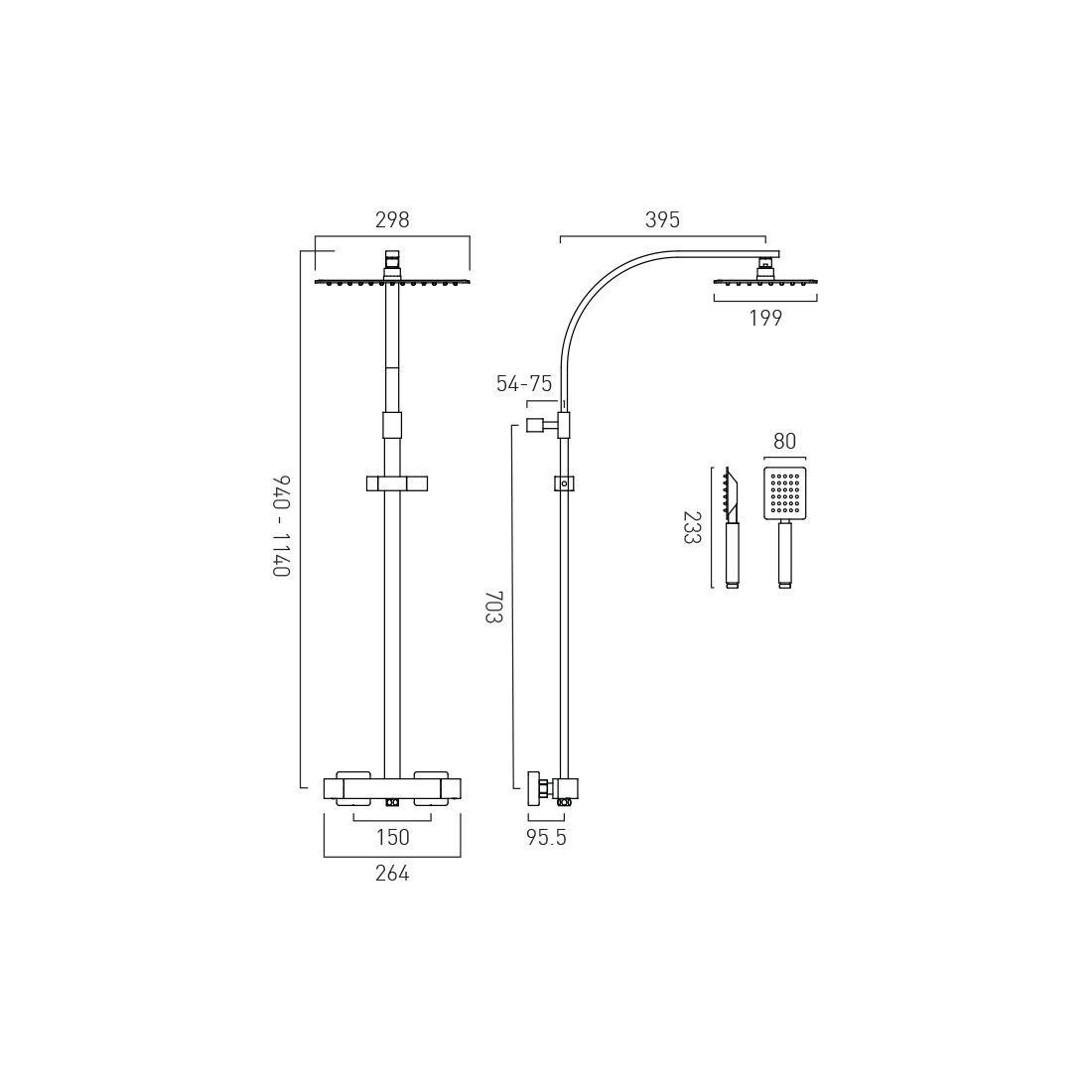 - Shower Head Size: 200mm x 300mm