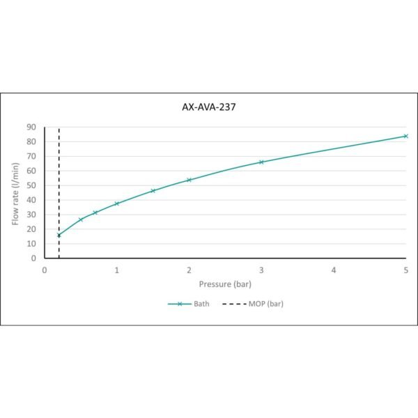 - Flow Rate At 3.0 Bar Flow Pressure: Bath fill at 3 bar water pressure allows for 57.1 l/m, at 1 bar allows for 32.9 l/m