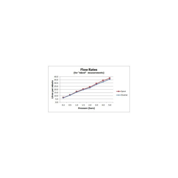 - Flow Rate At 3.0 Bar Flow Pressure: Spout: 29 l/min, Diverter: 27.9 l/min
