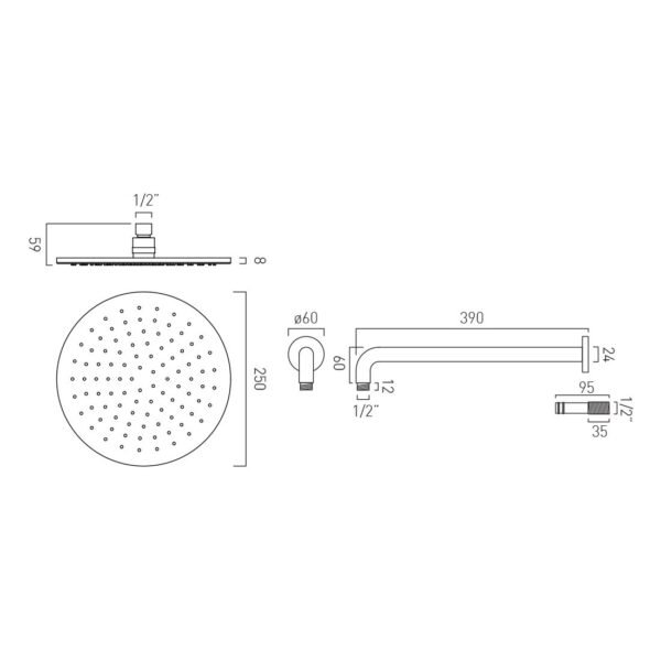 Vado Nebula Round Single Function Shower Head With Arm – 250mm – Chrome