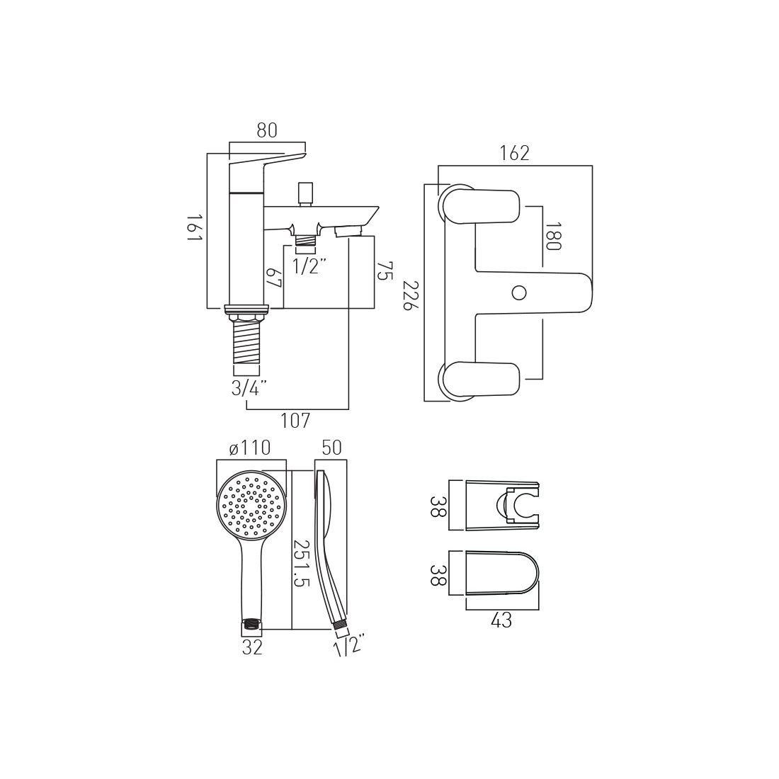 - Connections / Fittings: 2 x 3/4″ 53mm male threaded connection